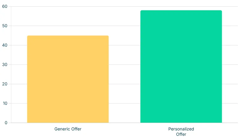 As the chart shows, tailored product recommendations and email offers result in a significantly higher AOV compared to generic, store-wide promotions. This hack builds loyalty and increases lifetime value.