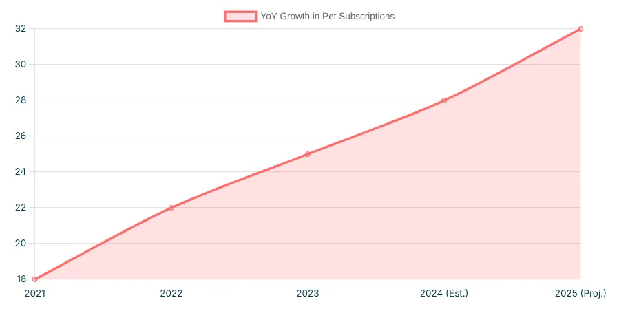 The projected year-over-year growth for pet supply subscriptions shows a clear and sustained trend. Customers are actively seeking auto-ship options, making this a critical feature for any pet eCommerce store.