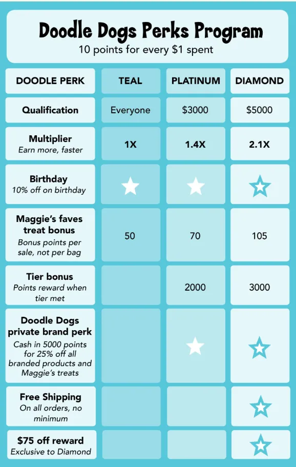 Doodle Dogs implemented a sophisticated, multi-layered loyalty program using the Growave e-commerce marketing platform.